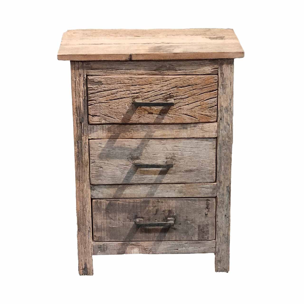 Echt recycelt. Echt nachhaltig. Echt einzigartig. Das ist das Nachtschränkchen von nature and skurios. Es besteht aus kubanischem Recycling-Holz und jedes Stück ist ein echtes Unikat.