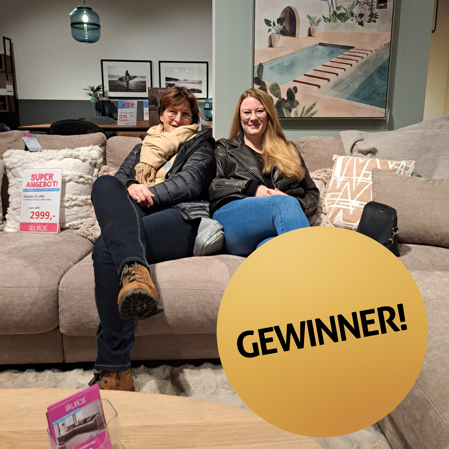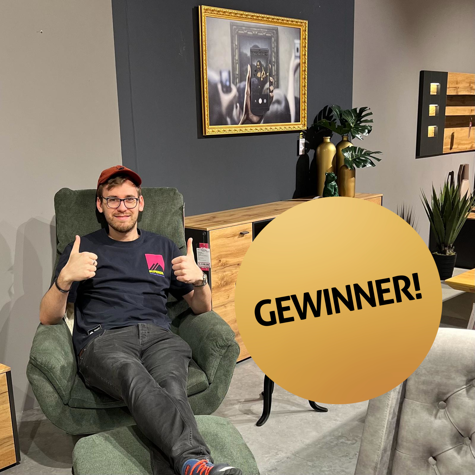 Jeden Samstag habt ihr bei uns im skurios® die Möglichkeit einen 100,- € Möbelgutschein zu gewinnen. 🤩 Dazu müsst ihr nur vorbeikommen und euch in unserer Ausstellung fotografieren lassen. Die Bilder werden dann hier und auf unserer Facebook-Seite veröffentlicht.